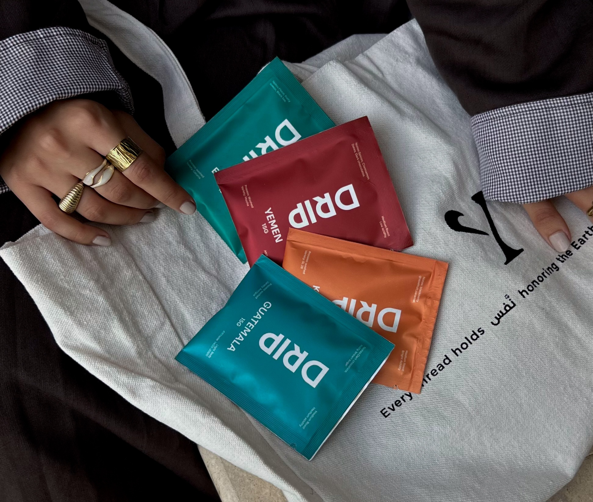Tear the drip bag along the top and gently shake to level the coffee grounds.